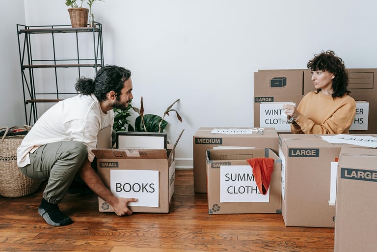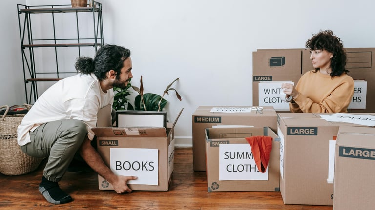 Etiqueta las cajas por habitaciónes Asi encontraras todo mas rapido.